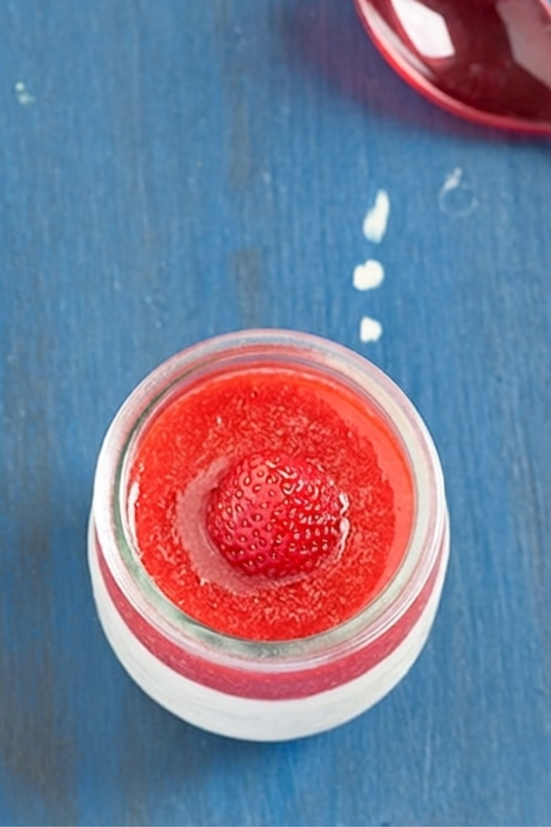 - Prima di servire la panna cotta, aggiungere a ogni forma qualche cucchiaio di salsa di fragole.